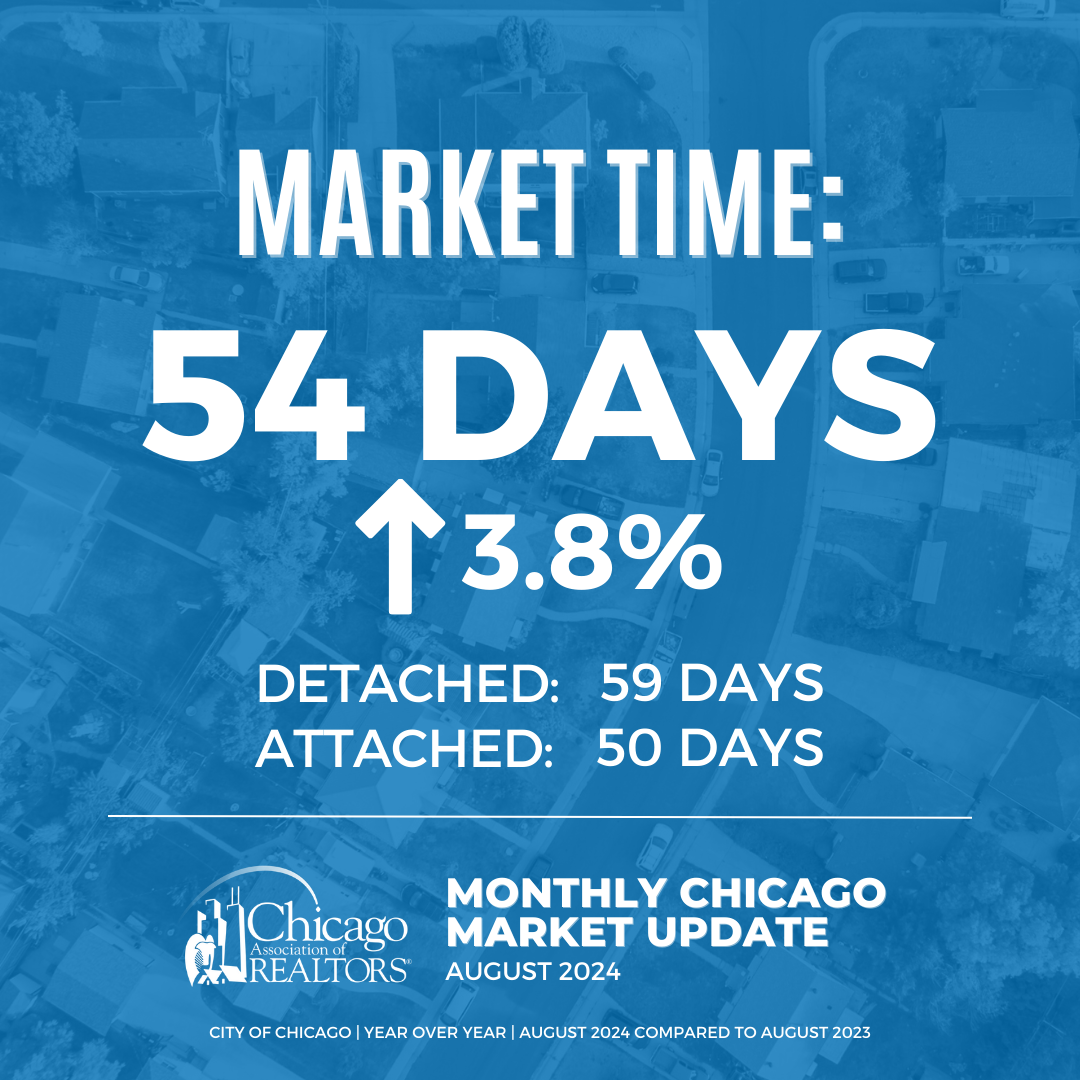 - The City of Chicago saw listings average 54 days on the market until contract, which is a 3.8% increase from August 2023.