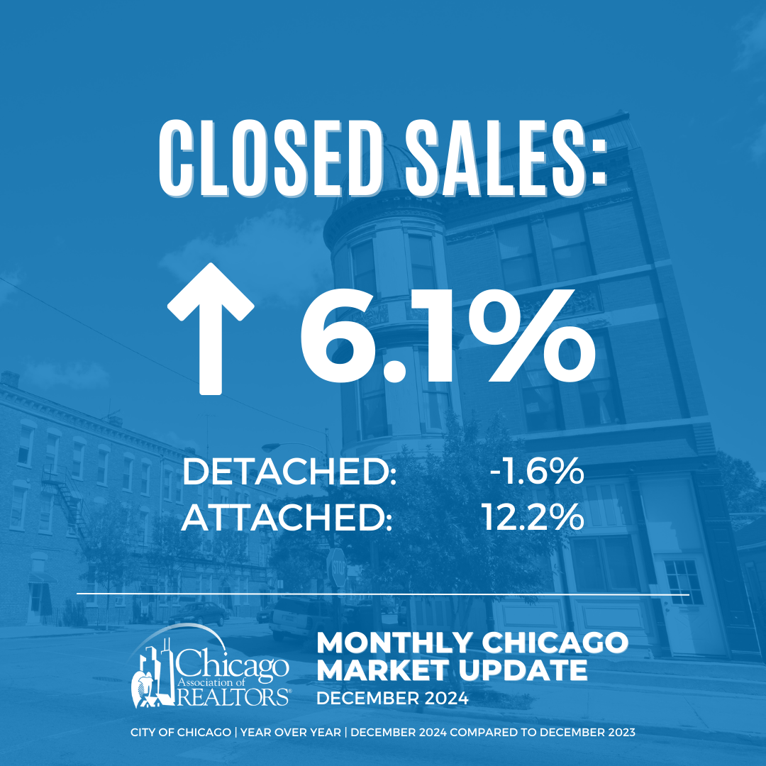 • 1,594 properties were sold in the City of Chicago in December 2024. This is a 6.1% increase from December 2023.