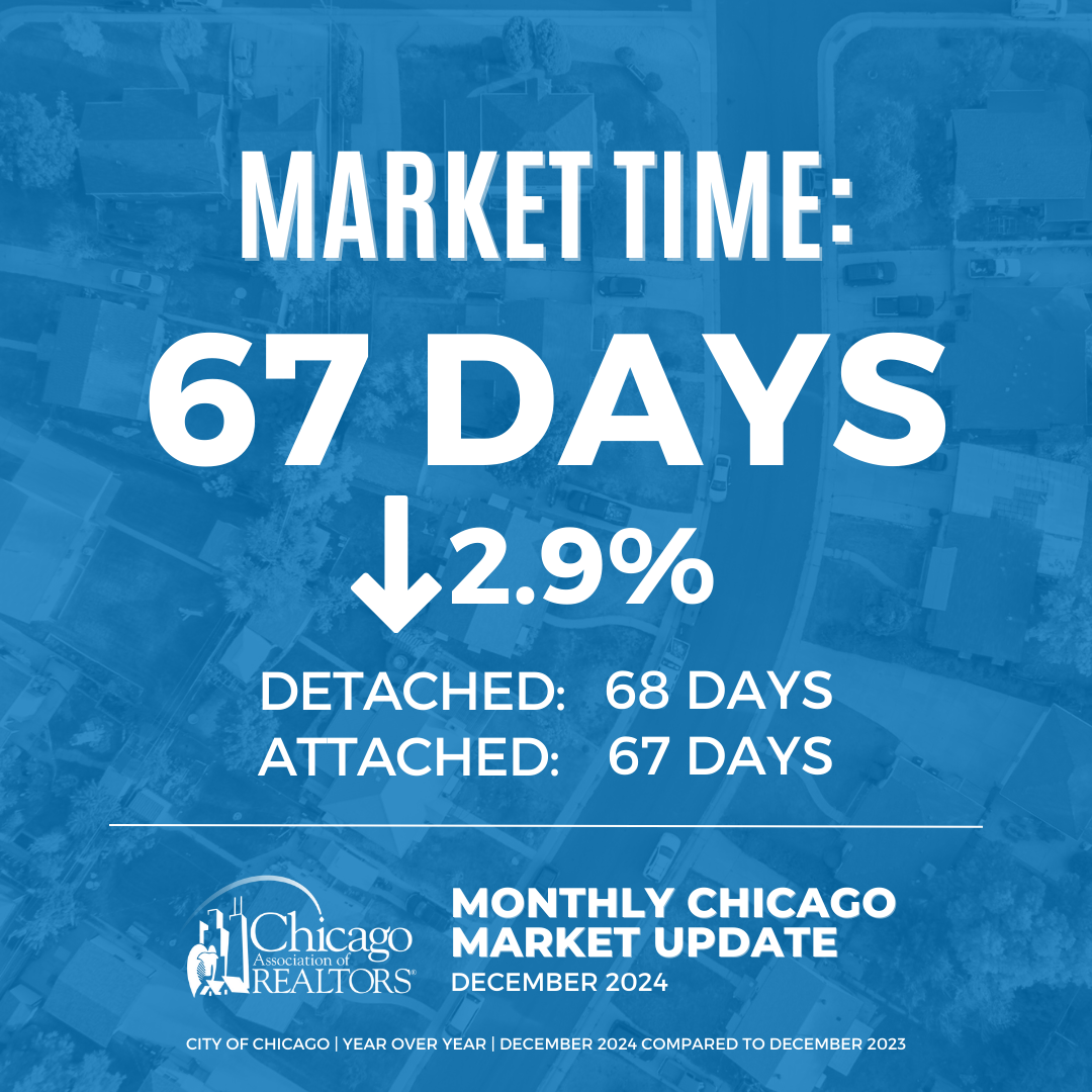 • The City of Chicago saw listings average 67 days on the market until contract, which is a 2.9% decrease from December 2023.
