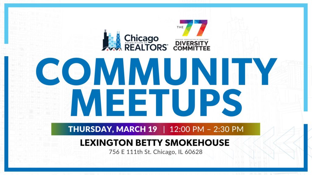 By registering to participate in this event, you hereby acknowledge and consent that The Chicago Association of REALTORS® (and their assignees) may take photographs and/or video of you during the event and may use those photographs and recordings for the Association’s purposes, including but not limited to news, publicity and fundraising purposes, without further compensation to you. All such photos and videos are the sole property of the Association.