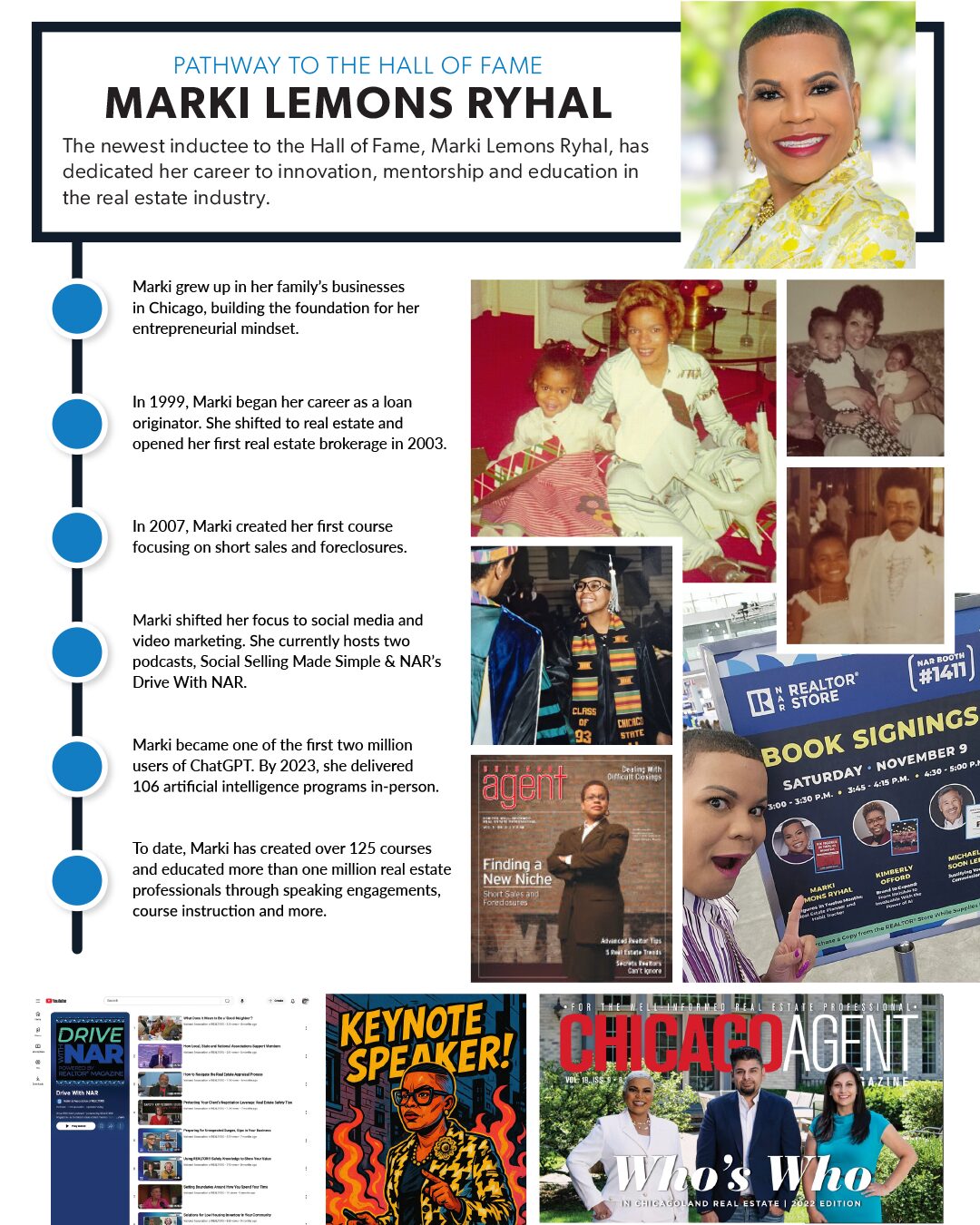 Since then, Lemons Ryhal has become one of the industry’s most dynamic voices, particularly on emerging technologies such as social media and artificial intelligence. She was among the first two million people to adopt ChatGPT, and her forward-thinking approach has fueled the creation of more than 125 courses on real estate and business development. Over the years, she has educated more than one million real estate professionals through speaking engagements, course instruction and more.