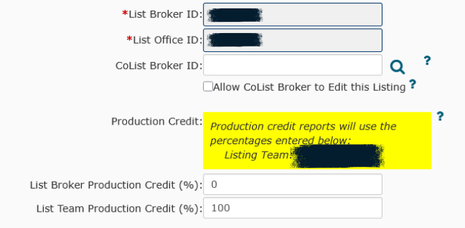 Listings added under a personal ID will not show up under the Team production unless the listing agent specifically gives credit to the team using MRED’s split production credit.