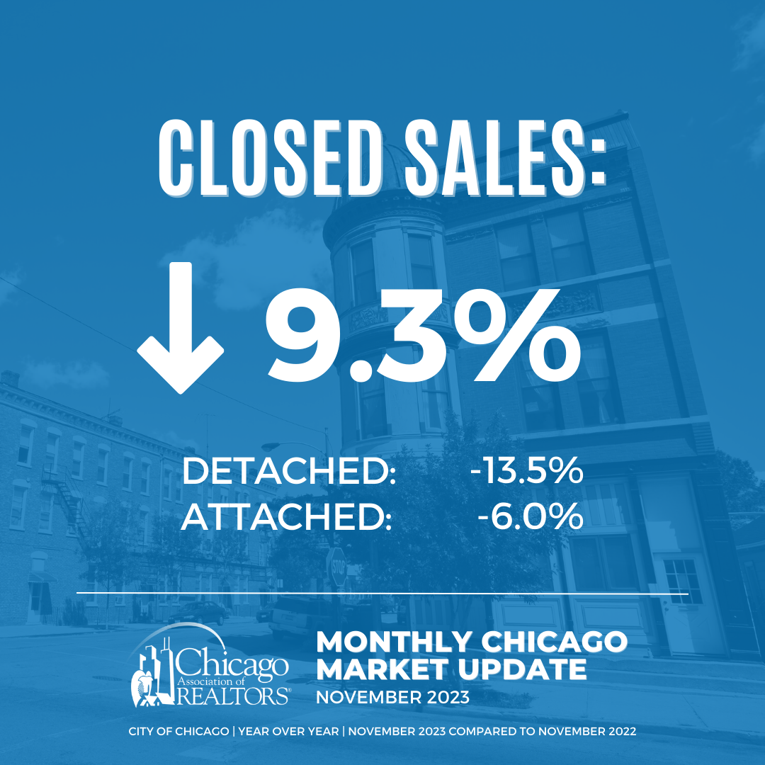 - 1,415 properties were sold in the City of Chicago in November 2023. This is a 9.3% decrease from November 2022.