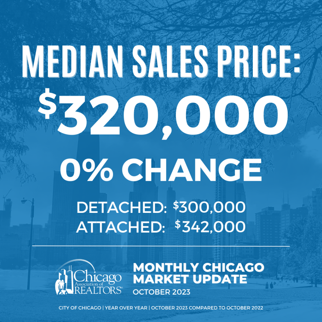 • The median sales price in the City of Chicago for October 2023 was $320,000, which is the same as October 2022.