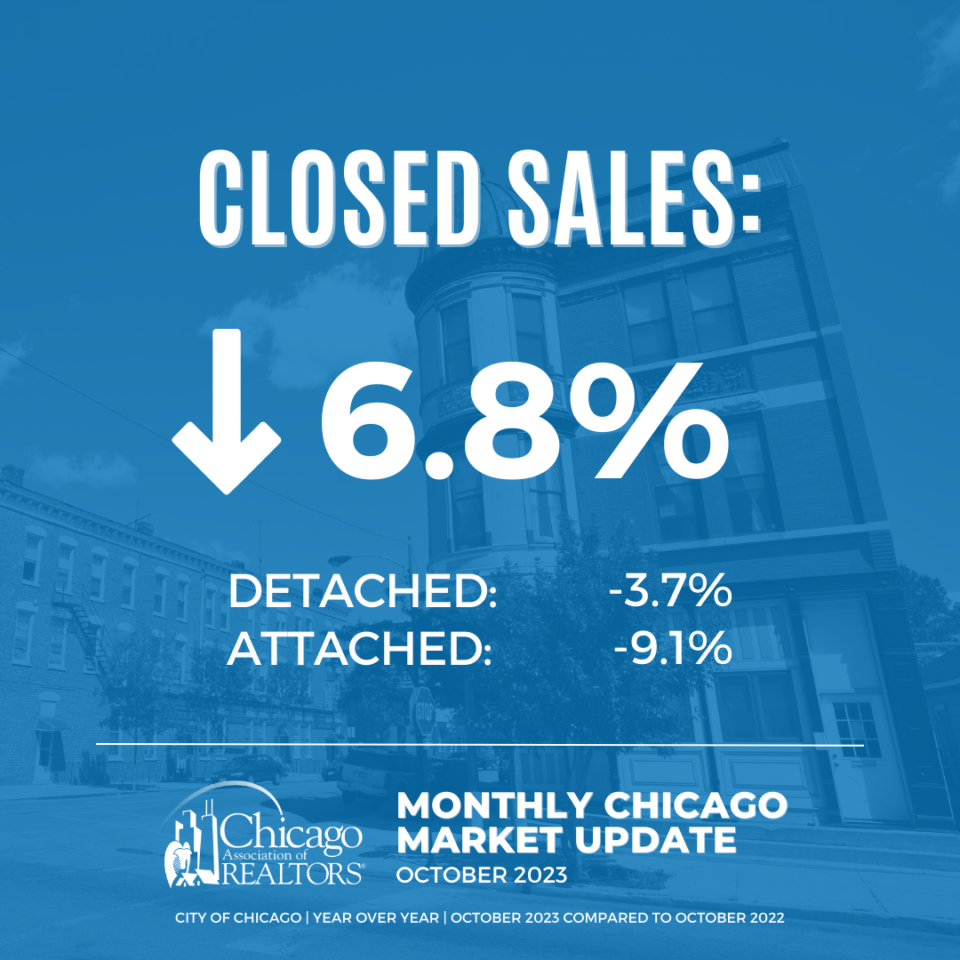 • 1,621 properties were sold in the City of Chicago in October 2023. This is a 6.8% decrease from October 2022.
