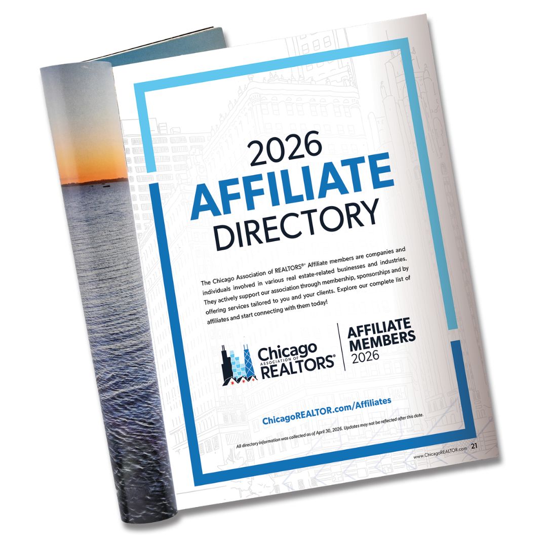 - Listing in our Affiliate Directory on ChicagoREALTOR.com, which is sent to members when they join, promoted throughout the year and available 24/7 at ChicagoREALTOR.com.